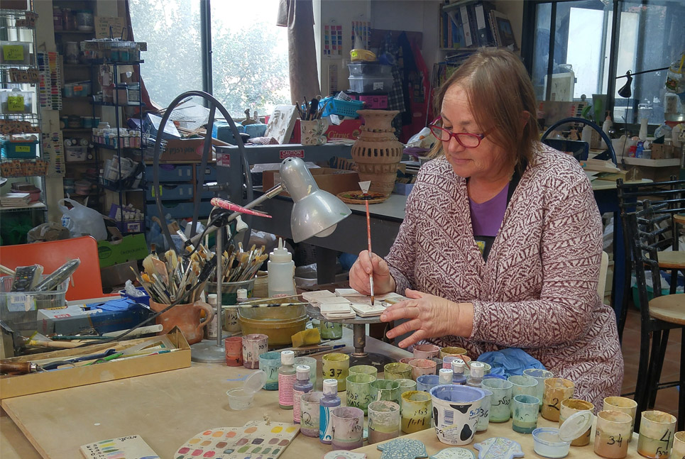 הסטודיו של אסנת הוא חגיגה של צבעים, דמויות ודמיון, וכל מי שנכנס, יקנה או לא יקנה, מתקבל בסבר פנים יפות ובשמחה שמואל לוין כפר