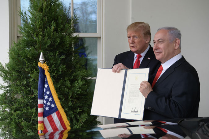 הכרזת הנשיא טראמפ על הכרה בריבונות ישראלית בגולן תיזכר כיום היסטורי לגולן ולמדינת ישראל ראש מועצת קצרין, בירת הגולן, דימי אפרצב, סיכם בהתרגשות את הכרזת