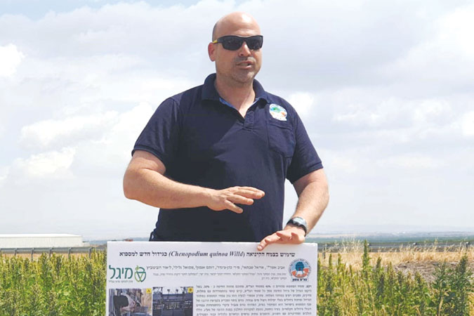 חוקרי מו"פ צפון ערכו סיור חשיפה ראשוני לחלקת מודל לגידול מסחרי של קינואה, במבוא חמה, ברמת הגולן סיור מקצועי להצגת מחקר חדש בתחום גידול הקינואה,