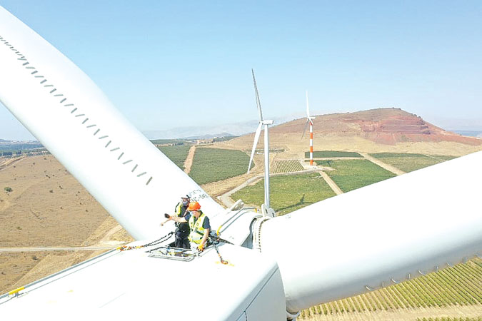 שר האנרגיה, יובל שטייניץ, ביקר השבוע בחוות הטורבינות המוקמת בעמק הבכא ואמר: "בעתיד, תספק רמת הגולן חשמל נקי לכל חלקי מדינת ישראל" מימין: עופר בלוך,
