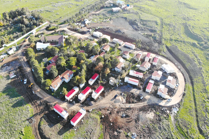 יחידות הדיור הזמני ממוקמות עבור המשתכנים החדשים שיהיו הגרעין המקים של רמת טרמפ. בתמונה: רמת טרמפ מהאוויר. צילום אייל פלד
