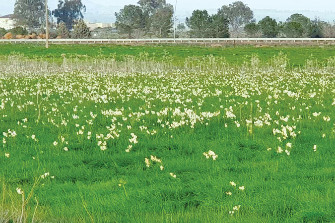 רשות הכנרת ממליצה על טיול לאחו נוב, בכניסה ליספין, בדרום רמת הגולן. מרבדים לבנים גדולים של נרקיס מצוי. ביקור בשביל נוח ומונגש ברשות הכנרת ממליצים