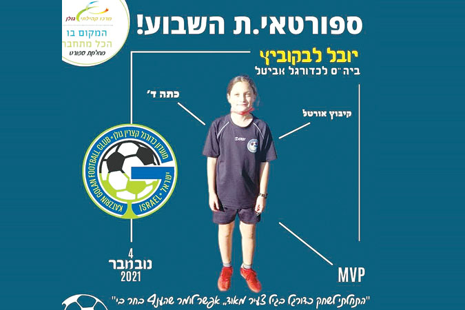 כששואלים אותה למה בחרה בכדורגל, היא עונה: "הכדורגל בחר בי". יובל לבקוביץ', מקצרין, תלמידת ד', בביה"ס "אביטל", היא ספורטאית השבוע שלנו ספורטאית השבוע של מחלקת